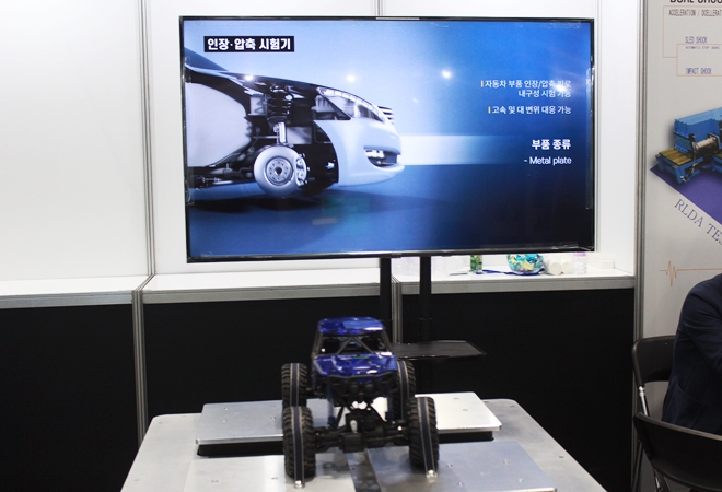 ▲부스에 설치된 진동 시험기 모형(사진 : 서재창 기자)