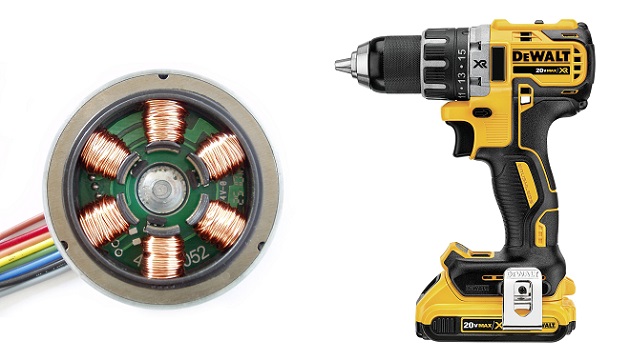 ▲(왼쪽)브러쉬리스 모터 구조와 디월트의 브러쉬리스 모터 방식의 드릴 드라이버