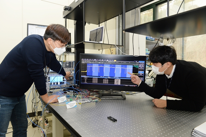 ▲ETRI 연구진이 개발한 5G 광중계기 기술 성능을 점검하고 있는 모습(출처 : ETRI)