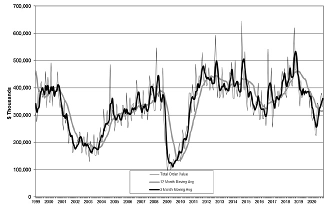 ▼ 2020년 11월 미국 공작기계 수주 현황 (Total U.S. Manufacturing Technology Orders Through November 2020)