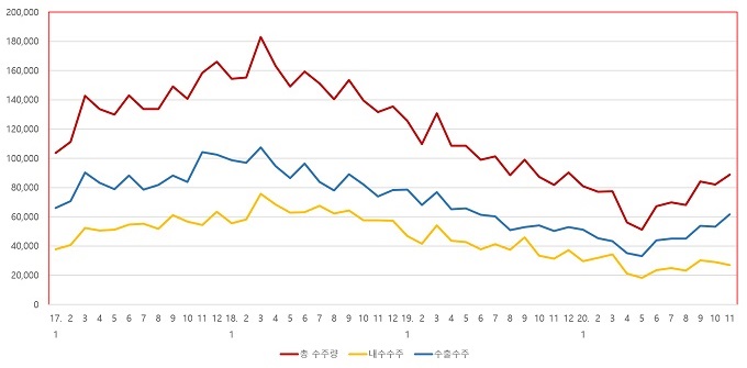 특히 해외 수요가 크게 증가하면서 수출수주 부분이 서서히 회복하고 있다. 무엇보다 중국에서의 수주가 정상 수준으로 돌아오고 있고, 다른 지역도 마찬가지로 회복세로 전환되고 있는 상황이다.