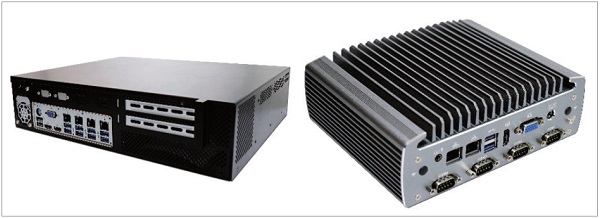 ▲ AI 임베디드서버 JECS-C246STM229(왼쪽)와 공장자동화용 팬리스 미니PC JECS-6200B-i5