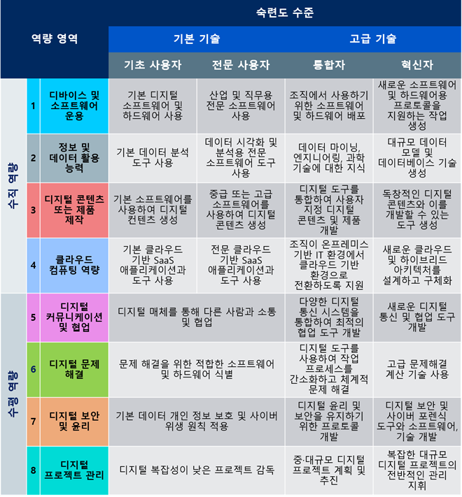 해당 기술역량은 2025년까지 가장 빠르게 수요가 증가할 것으로 예상되는 상위 5개 디지털 기술인 ‘클라우드 아키텍처 설계’, ‘사이버 보안’, ‘대규모 데이터 모델링’, ‘웹·소프트웨어·게임 개발’ 및 ‘소프트웨어 운용 지원’ 중 4개 기술에 걸쳐 있다.