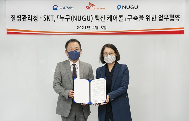 SK텔레콤은 질병관리청과 코로나19 백신 접종을 돕는 ‘누구 백신 케어콜(NUGU vaccine carecall)’ 구축∙운영을 위한 협약을 맺었다고 8일 밝혔다.