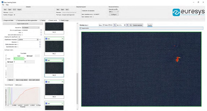 Open eVision은 무료 Deep Learning Studio 애플리케이션을 포함한다. 이 소프트웨어는 데이터 세트를 생성할 때와 딥러닝 도구를 교육 및 테스트하는 단계에서 사용자를 도와준다. 예를 들어, EasySegment의 경우 주석 도구를 통합하고 있으며 예측(Prediction)을 실측 자료 주석(Ground Truth Annotation)으로 변환할 수 있다. 또한 성능 요구 사항에 맞도록 그래픽 환경에서 도구를 구성할 수 있다. 그리고 학습 후에 더 나은 불량 감지율과 더 나은 양품 감지율 사이에서 적당한 tradeoff 지점을 선택할 수 있다.