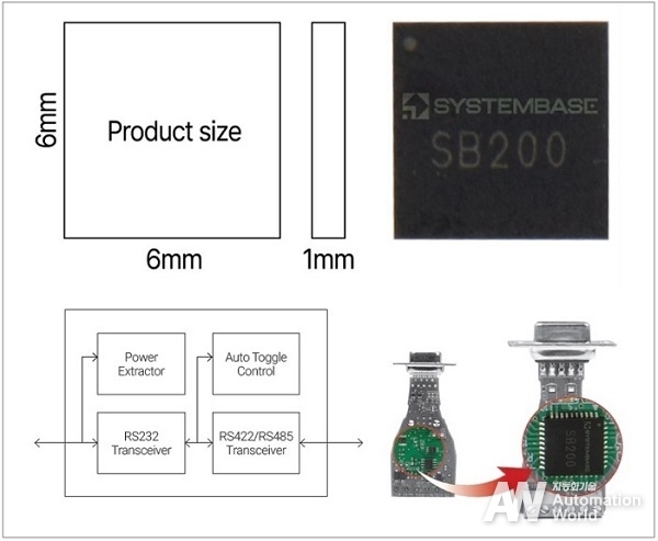 이번 AW 2026 전시부스에서는 세계 최초의 RS232 to RS422/RS485 컨버팅 트랜시버 원칩 솔루션인 ‘SB200’을 선보인다. SB200은 RS232 트랜시버와 2개의 RS422/RS485 트랜시버, 포트 전원 추출기를 하나의 칩에 집적한 제품으로, RS232와 RS422/RS485 신호 간 상호 변환 기능을 원칩으로 구현했다. 이를 통해 기존에 여러 개의 트랜시버 칩과 주변 회로가 필요했던 시리얼 컨버터 설계를 보다 쉽고 경제적으로 구현할 수 있다.