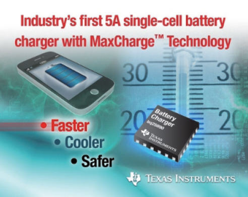 완전 통합형 5A 단일 셀 리튬이온(Li-ion) 배터리 충전 IC는 보다 빠르게 낮은 온도에서 충전할 수 있는 고유의 MaxCharge 기술을 적용해 충전 시간을 기존 배터리 충전 IC 대비 최대 60%까지 단축시켰다.