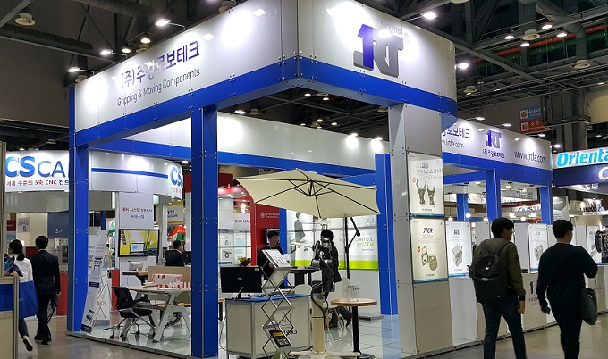 한국기계전에 참가한 주강로보테크는 Electronic Gripper를 직접 시연하며 참관객들의 주목을 받았다. 그중 JEGA 모델은 비상 스위치가 장착되어 있어 협착 등 비상 발생 시 안전성을 확보할 수 잇다. 스피드, 토크, 스트로크 제어가 가능하며 칩, 분진 발생 및 절삭유를 사용하는 열악한 환경에서도 충분히 사용 가능한 IP55 등급을 실현했다. Jaw 위치 변경 시 GUI를 통한 좌표값 저장 기능도 갖고 있다.