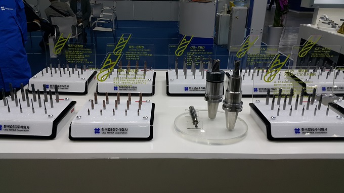 한국OSG는 SIMTOS 2018에 참가해 다양한 밀링가공용 공구인 엔드밀을 선보였다. 1976년에 설립된 한국OSG는 절삭공구 국산화에 힘써 왔으며, 1985년 일본OSG와의 합작을 통해 용도별 탭 생산을 시작했다. 1988년에 엔드밀을 생산해 절삭공구 종합 제조사로 발전한 후 꾸준한 연구를 통해 현재 스플라인 다이스, 풀리 다이스, 웜 다이스, 리드스크류 다이스와 초경 탭, 셸 탭, 인터 탭, 초경 엔드밀, 극소경 엔드밀, 고속가공용 엔드밀 등을 개발 및 생산하고 있다.
