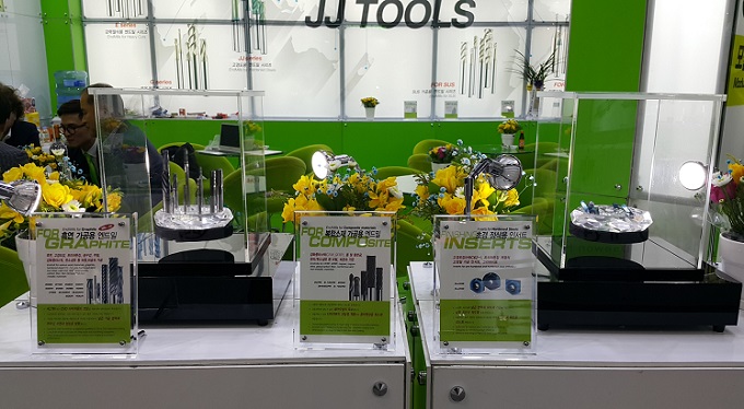 CBN·SUS 가공용 엔드밀 등 1만여 개의 제품 라인업을 갖추고 있는 제이제이툴스는 SIMTOS 2018에 참가해 흑연 가공용 엔드밀, 복합소재 가공용 엔드밀, SUS 가공용 엔드밀, G-TAC 코팅 엔드밀, 초경 정삭용 인서트 등 다양한 제품들을 전시했다.