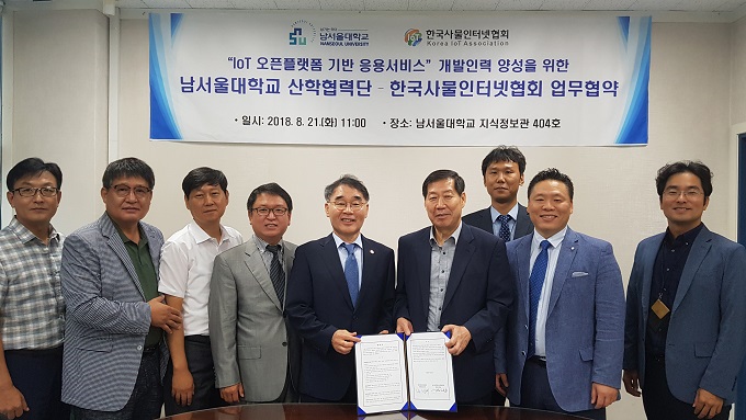 한국사물인터넷협회(회장 이형희)와 남서울대학교(총장 윤승용) 산학협력단은 4차 산업혁명의 핵심 기술인 사물인터넷 분야 인력 양성을 위한 교육의 산․학간 연계성 강화 등 상호 협력을 위해 지난 21일 남서울대학교에서 산학 협력을 체결하였다.