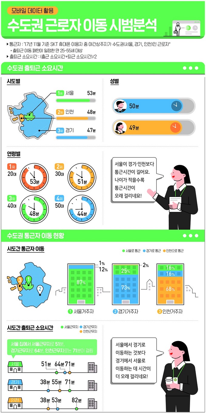 SK텔레콤과 통계청은 지난해 휴대전화 이용자들의 이동 관련 빅데이터를 분석해 수도권의 출퇴근 소요 시간과 수도권 통근자 이동 현황 등을 파악하는 시범사업을 실시한 바 있으며 이번 협력을 통해 보다 깊이 있는 다양한 분석이 가능해질 것으로 기대하고 있다.