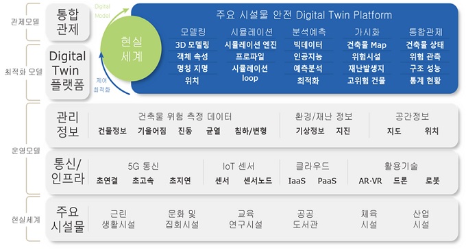 ▲5G기반 디지털트윈 주요 시설물 안전관리 체계도(예시)