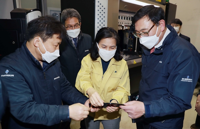1992년 설립된 한국브렌슨은 마스크 제조 시 활용되는 초음파 용착기를 생산하는 외국인투자기업으로, 이번 방문은 우리 경제의 한 축을 담당하고 있는 외투기업이 코로나19 확산으로 겪고 있는 애로를 현장에서 점검하고, 마스크 생산 시 필요한 핵심장비인 초음파 용착기의 적기공급 협조를 위해 마련됐다.