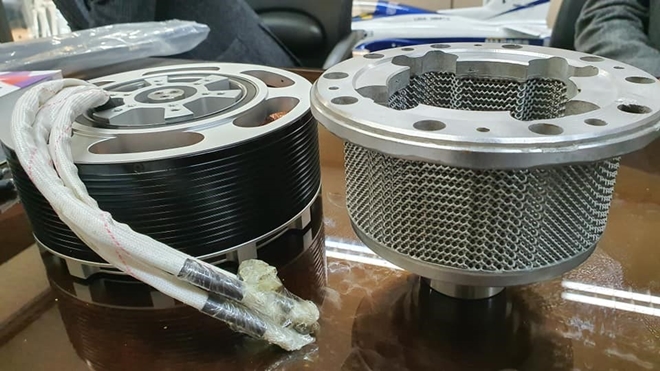 ▲실제 유인드론에 들어가는 모터를 경량화한 사례