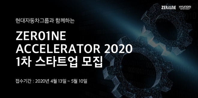현대차그룹이 오픈이노베이션 플랫폼 ‘제로원 액셀러레이터(ZER01NE ACCELERATOR)’의 2020년 1차 스타트업 공개 모집을 시작한다.