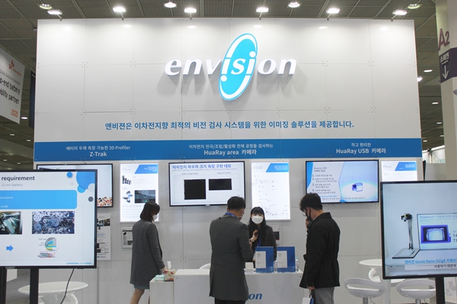 이에 앤비젼 부스에서는 이차전지 전극·조립·활성화 전체 공정을 검사하는 'Huaray area 카메라', 'HuaRay USB 카메라', 고속 솔루션을 제공하는 '5GigE 카메라' 등으로 구현된 화면을 확인할 수 있었다.