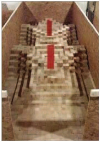 STM은 실제 재해 현장에서 로봇·드론이 필요로 하는 공통 기반 성능을 반복 가능(repeatable), 재현 가능(reproducible), 저가격(inexpensive)으로 정량적(quantitative)으로 평가할 수 있는 것을 목표로 하고 있다. 예를 들어 그림 1에 육상 이동 로봇의 부정지 이동 능력을 평가하는 STM(ASTM 규격으로 발행 완료)을 나타냈다. 그림 1에서 볼 수 있듯이 STM의 설비는 목재 등 구하기 쉬운 재료로 작성되어 있으며, 일반적인 연구기관이나 작은 재해 대응 조직에서도 STM을 이용한 로봇의 평가나 훈련이 가능하도록 배려되어 있다.