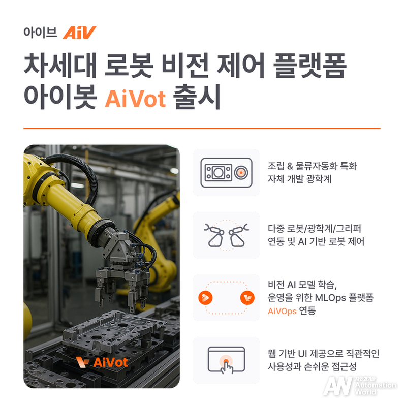 제조·물류 자동화 혁신을 선도하는 피지컬 AI 및 비전 전문기업 아이브(AiV, 대표 성민수)가 제조·물류 특화 AI 로보틱스 플랫폼 ‘아이봇(AiVot)’을 공식 출시했다고 밝혔다.