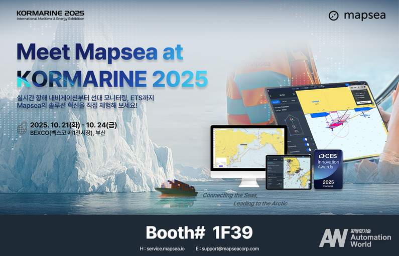 해양 빅데이터 혁신 기업 ㈜맵시(Mapsea, 공동대표 조홍래)가 오는 21일부터 24일까지 부산 벡스코에서 열리는 ‘제24회 국제 조선 및 해양 산업전(KORMARINE 2025)’에 참가해 AI와 디지털 트윈 기반의 차세대 북극항로 항해 솔루션을 선보인다.