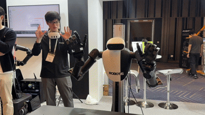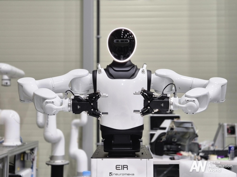 뉴로메카의 차세대 휴머노이드 플랫폼 ‘에이르(EIR)’도 현장에 배치됐다. 총 18DoF 상체 중심 듀얼-암(Dual-arm) 구조의 상체형 휴머노이드다. 엔비디아의 로보틱스 시뮬레이션 플랫폼 ‘엔비디아 아이작 심(NVIDIA Isaac Sim)’ 기반의 ’시뮬레이션·현실 전이(Sim2Real)‘을 구현한 모델로 평가받았다. 이는 시뮬레이션 환경에서 학습된 정책을 실제 로봇에 이식하는 방법론을 이식한 기술이다.