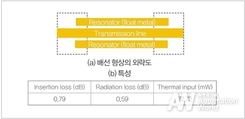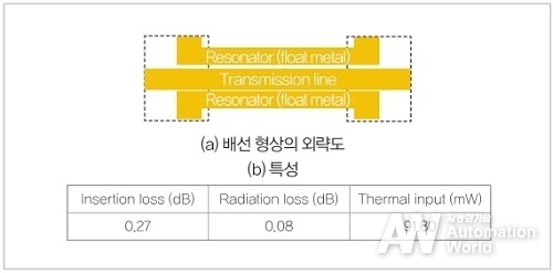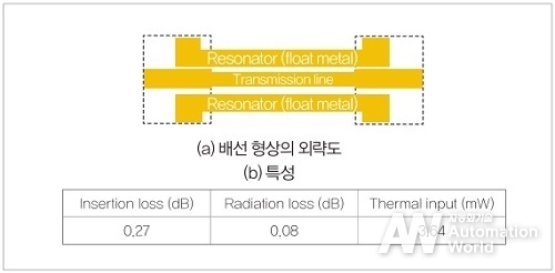 이러한 대응으로 일반적인 마이크로스트립 라인의 통과 손실과 방사 손실의 특성을 유지한 상태에서 0.6%의 열 침입량으로 저감할 수 있다는 것을 보였다. 실제로 시제작한 결과에서는 설계대로 통과 손실 0.3dB의 대역이 1GHz 이상 확보 가능해졌다.