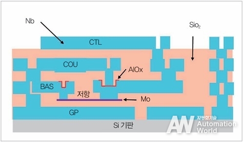 이들 장치를 사용해 Qufab에서는 초전도 양자 비트․양자 회로를 위한 새로운 공정 개발과 기업과의 산학관 연계를 진행하고 있다. 또한 PHSTP라고 하는 표준적인 디바이스 구조를 기반으로 한 회로의 시제작 대행을 하고 있다. PHSTP 구조의 단면도를 그림 5에 나타냈다. PHSTP 구조는 GP, BAS, COU, CTL의 Nb 초전도 배선 4층, Nb/Al-AlOx/Nb 조셉슨 접합층, Mo 저항층으로 이루어진 구조이다. 또한 이 구조는 설계를 쉽게 하기 위해 모든 층이 평탄화되어 있다. Nb 초전도 배선의 최소 선폭은 1.0µm이다. 조셉슨 접합의 임계 전류 밀도(Jc)는 10kA/cm2, Mo 저항의 시트 저항값은 2.4Ω이다. 이러한 공정 규칙 아래에서 사용자는 설계를 하고 Qufab이 디바이스의 시제작 대행을 하는 것이 가능하다. 이 시제작 대행은 국내외 대학, 공적 기관, 민간 기업 누구나 이용할 수 있는 제도이다.