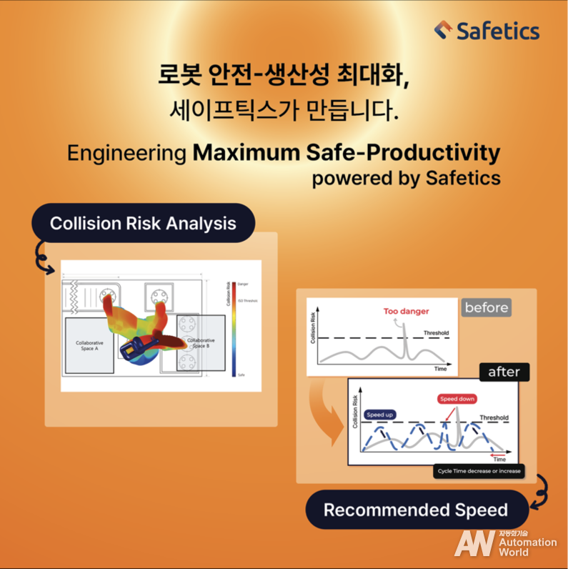세이프틱스가 오는 3월 '오토메이션월드 2026'에서 AI 기반 충돌 분석 및 안전 설계 솔루션 'SafetyDesigner'를 중심으로 펜스 없는 협동로봇 환경을 위한 시뮬레이션 기반 안전 설계 기술을 선보인다. 2025년 글로벌 기업 넥스코봇(NexCobot)과 총판 계약을 체결하며 대만·일본·중국 시장 진출 기반을 마련한 세이프틱스는 '모든 로봇에 로봇 안전지능을 탑재해 사람과 로봇이 경계 없이 공존하는 세상'을 비전으로 제시하고 있다.