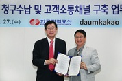 한국전력(사장 조환익)은 어제(27일) 한전 본사에서 다음카카오(대표이사 이석우)와 핀테크를 적용한 전기요금 청구 및 납부 그리고 양방향 소통 채널 구축에 상호 협력하는 업 무협약을 체결했다. 이번 협약은 모바일 메신저를 활용한 전기요금 청구 및 모바일 간편 결제 시스템을 도입하는 것과 한국전력과 전기 사용 고객 간의 양방향 소통 채널을 구축하는 것, 그리고 다양한 모바일 부가서비스를 개발하여 고객 중심의 원스톱 전력 서비스 체계를 갖추는 것이 주요 목표이다. 카카오톡을 통한 전기요금 청구 및 수납서비스가 출시되면 제작과 우편 송달 등 비교적 시간이 오래 걸리는 종이 청구서 대신 카카오톡을 통해 전기요금을 곧바로 확인할 수 있고, 1년 365일 언제든지 카카오페이를 통해 편리하게 납부할 수도 있게 된다. 한국전력은 금융환경 변화 시점마다 전 국민의 요금 납부 편의를 위해 적극적으로 선진 수납 제도를 도입해 왔으며, 국내외 모바일 결제시장 확대 등 최근의 수납 환경 변화에 발맞추어 고객편의 제고를 위해 핀테크를 활용한 수납방법을 적극 추진할 예정이다. 한전 조환익 사장은, “2,150만 고객을 보유한 한국전력과 카카오톡이라는 강력한 모바일 네트워크