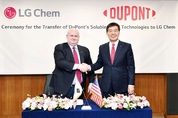 [첨단 헬로티] LG화학이 미국 ‘듀폰(DuPont)’으로부터 차세대 디스플레이의 핵심 플랫폼인 ‘솔루블 OLED(Soluble Organic Light Emitting Diodes)’의 재료기술을 인수한다. LG화학은 최근 여의도 LG트윈타워에서 신학철 부회장, 듀폰 마크 도일(Marc Doyle) 부회장 등이 참석한 가운데 ‘솔루블 OLED 재료기술 인수식’을 개최했다고 밝혔다. ▲ LG화학이 듀폰과 ‘솔루블 OLED 재료기술 인수식’을 개최했다. <사진 : LG화학> 인수 범위는 듀폰의 솔루블 OLED 재료기술과 노하우 등 물질·공정 특허 540여건을 포함한 무형자산과 듀폰의 연구 및 생산설비를 포함한 유형자산이다. 듀폰은 20년간 연구를 통해 기술난이도가 높은 ‘발광층’과 ‘잉크젯 프린팅 소자’분야의 독보적인 기술력을 보유한 회사다. 구체적인 인수금액은 양사의 협의에 따라 공개하지 않기로 했다. LG화학은 이번 인수를 통해 ‘솔루블 OLED’ 재료 분야의 모든 핵심기술을 단번에 확
