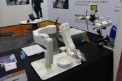 [첨단 헬로티] ‘인간과 로봇의 공생’을 경영 이념으로 하는 NT로봇은 식사보조 로봇 ‘케어밀(CareMeal)’과 척추손상 환자를 위한 웨어러블 보행 로봇 ‘리워크(ReWalk)’를 선보였다. 케어밀은 근력이 부족하여 혼자 식사가 어려운 환자를 위한 로봇이다. ▲ 이번 전시회에서 NT로봇은 식사보조 로봇 ‘케어밀’을 선보였다. <사진 : 김동원 기자> 밥과 반찬을 집어주는 팔(그랩 암)과 입에 음식을 넣어주는 팔(스푼 암)으로 구성된 이 로봇은 조이스틱으로 식사 동작을 제어할 수 있으며, 휴대전화에서 전용 앱을 이용해 식사 속도와 순서, 일 회 식사량도 설정할 수 있다. NT로봇 관계자는 “케어밀은 숟가락의 교환이 쉬워 개인뿐 아니라 요양 시설에서도 교대로 사용할 수 있는 로봇”이라고 설명했다. NT로봇이 케어밀과 함꼐 전시한 리워크는 환자들의 보행을 위한 웨어러블 로봇이다. 척추 손상 등으로 하반신이 불편한 환자의 재활과 이동을 돕는다. ▲ NT로봇이 전시한 척추손상 환자를 위한 웨어러블 보행 로봇 ‘리워크(ReWalk)&rsq